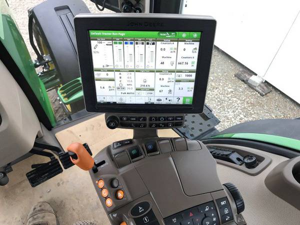 Stock # 296430, 2016 John Deere 7210R Tractor, 20 Speed Command Quad Plus Transmission, Left hand Reverser, Generation 4 4600 Display, Autotrac Activation, JDLink Connect Capable, Premium Command View III Cab With Active Seat, Premium Radio With XM Capable, 59 GPM Hydraulic Pump, 4 Rear Hydraulic Valves, 540E/540/1000 PTO, Cat 3/3N 3 Point Hitch, Cat 3 Drawbar, Rack And Pinion Rear Axle With Cast Wheels, Dual 480/80R46 Rear Tires, 1150 MFWD Front Axle, 380/85R34 Front Tires, Turnable Front Fenders, Full Coverage Rear Fenders, RH and LH Electrically Adjustable Mirrors, Dual Beam Radar, Beacon Light, 8 Front Weights, 1 Pair 165 LB Inner Rear Starter Weights, 1 Pair 450 Lb Inner Rear Wheel WeightsFuel Type: Diesel, Drive Type: MFD; Eng; Deluxe Cab; Enclosure: Cab/Air; Cab Seat: Air; Seat Condition: Excellent; Passenger Seat; GPS Navigation Ready; PTO: 540/540E/1000; Rear Remotes: 4; Weights, Front: 800, lbs., Rear: 1230, lbs.; Front Fenders; Hyd. Flow Control; Transmission: Partial Power Shift; Speeds Forward: 20; Speeds Reverse: 20; Differential Lock; 3 Point Hitch; Front Tire/Track Size: 380/85R34, Cond.: 90%L, 90%R; Rear Tire/Track Size: 480/80R46, 90%L, Cond.: 90%R; Rear Duals, Cond.: 90%L, 90%R; Axle: Bar; Ground Radar; Cab Cond: Excellent