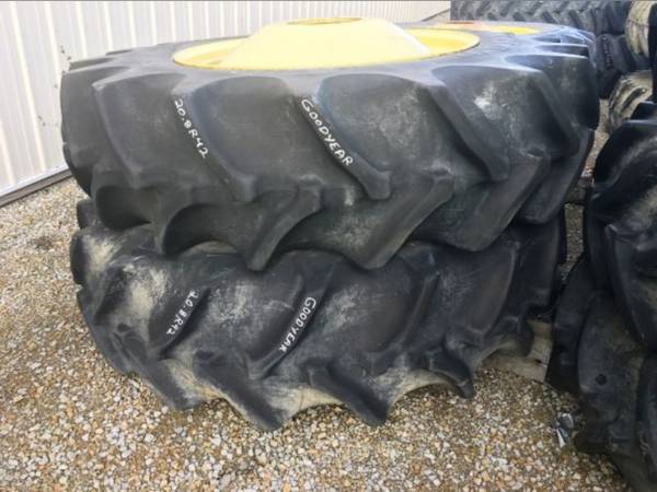Stock # 247954, Used 20.8R42’s, Set of 2, Goodyear brand, R1 tread, Combine duals only 2 rims and tires, Not a full set of 4Rear Tire/Track Size: 20.8R42, Cond.: 50%R, 50%L